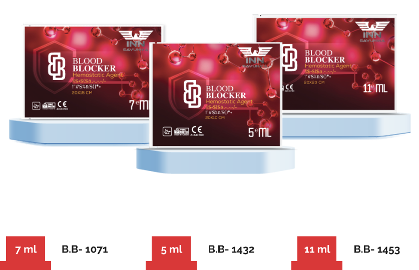 Blood Blocker Islak Tampon içeriğindeki kanama Durdurucu Sıvı, kılcal, toplardamar ve atardamar kanamalarının kontrolünde basınç uygulama, dikiş bağlama veya diğer rutin cerrahi kanama durdurucu işlemler etkisiz olduğunda yardımcı kanama durdurucu cihaz olarak cerrahi girişimlerde (nörolojik ve göz girişimleri hariç) kullanılır. Kan sulandırıcı kullanan hastalarda, hemofili ve şeker hastalarında kesin sonuç verir. Hipotermik yaralılarda sonuç verir. Atar ve toplar anadamar (arter/venöz) yaralanmalarında hızlıca pıhtılaşır ve tekrar kanamayı önler. Isı üretmez ve kullanım anında acı vermez vücut tarafından emiliminde risk yaratmaz.